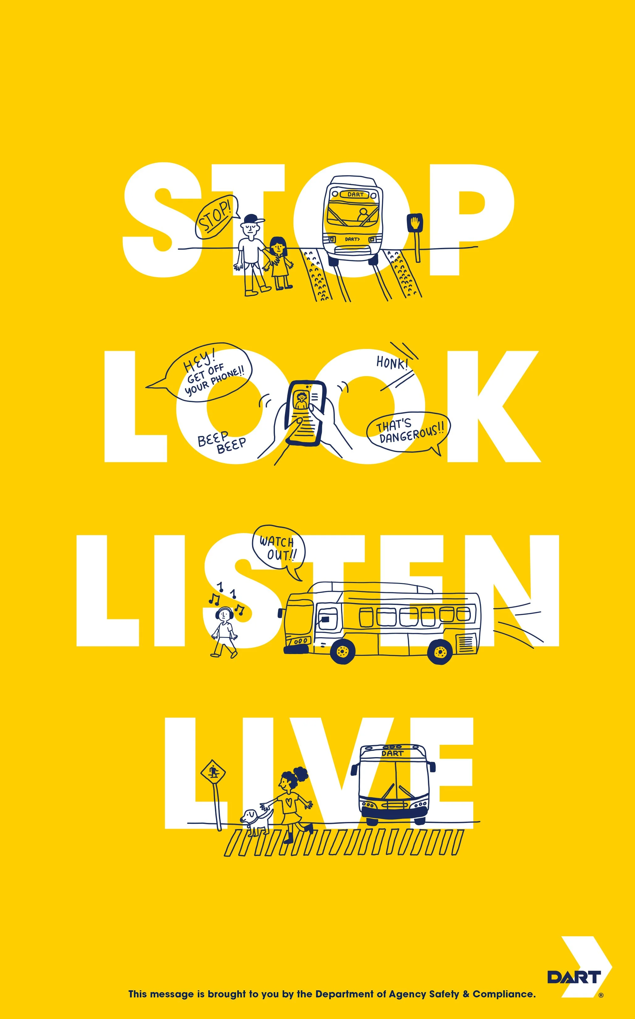 2023 DART Pedestrian Safety Awareness CampaignCW: Nicole DeMarco, AD and Illustrations: Laine Dorsey