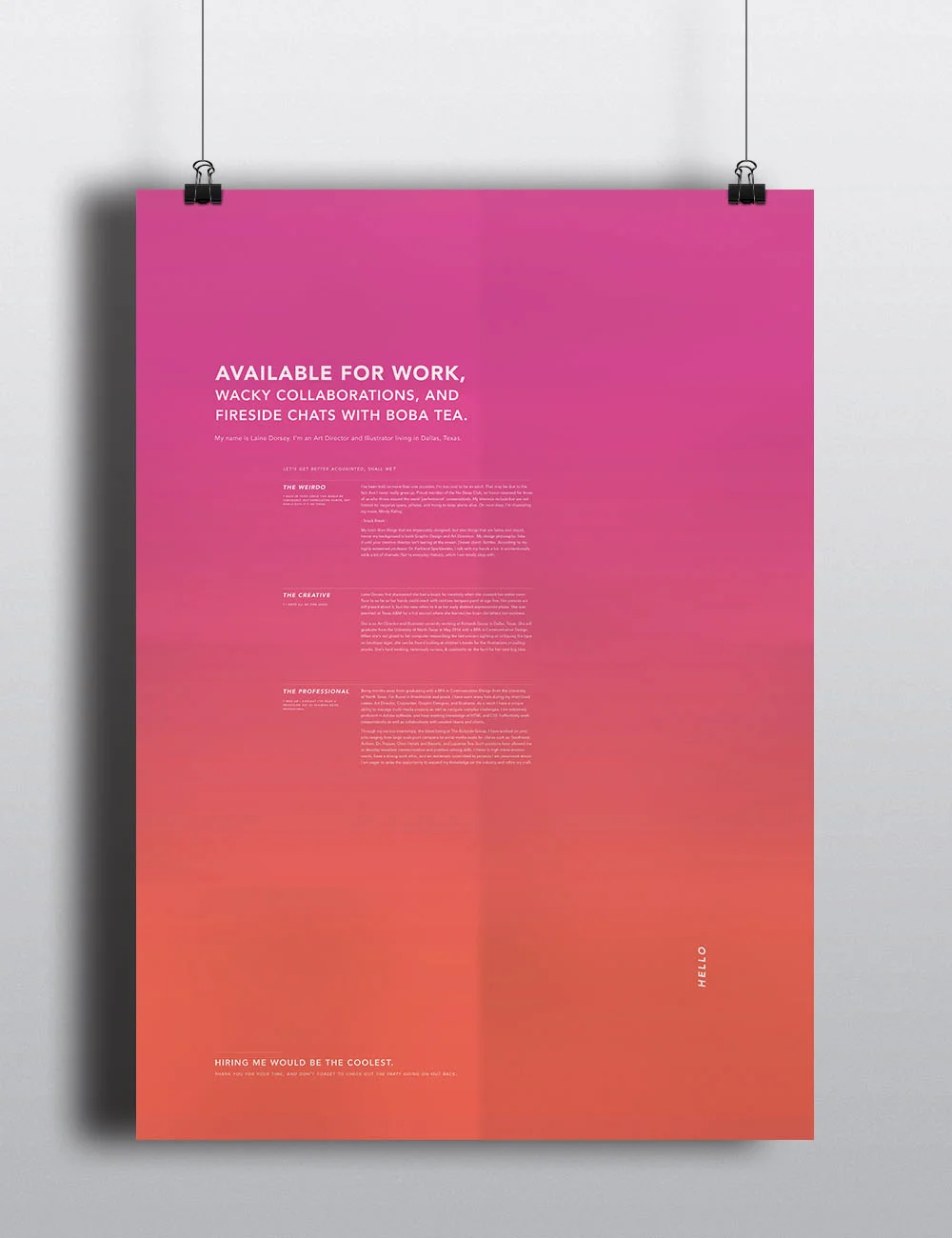 Personal Branding | Completed Fall 2015 Under Keith Owens | Illustration, Art Direction & Copywriting -Laine Dorsey